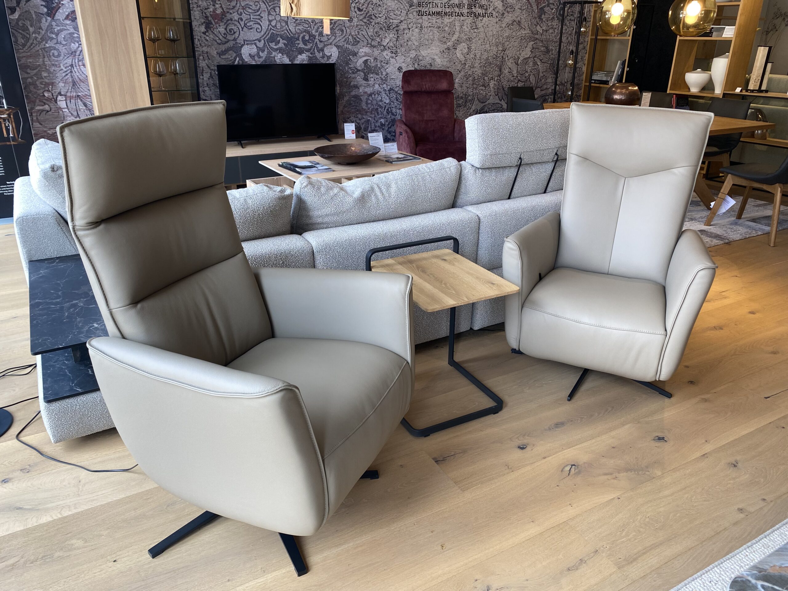 Drehsessel 1: Sitztiefe 55 cm, Sitzhöhe 48 cm, mit 2 Motoren, Kopfstütze manuell verstellbar, Rückenhöhe hoch